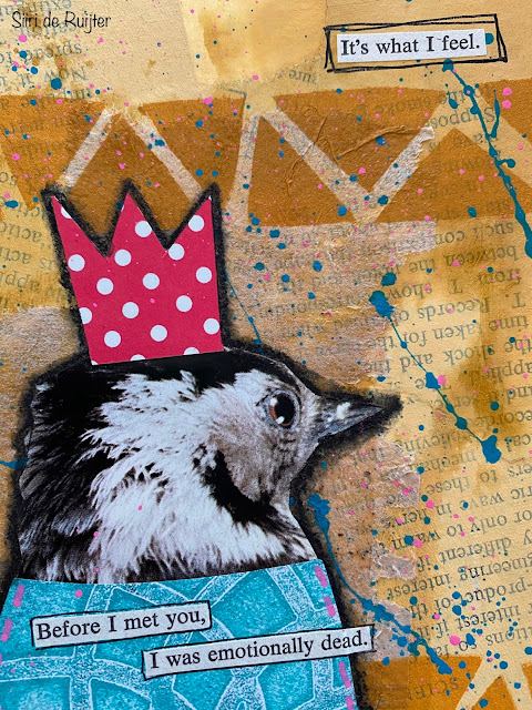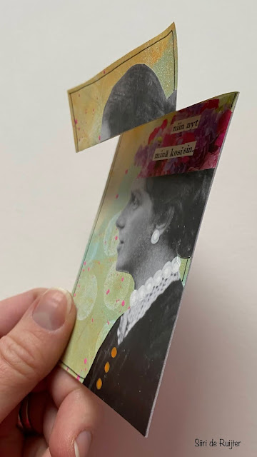 I made myself another mini art journal that is the size of an ATC because the first journal (this one) is filled up already. This small size is currently my favorite. You can make a nice mini page in just 15 minutes and even this short moment of art therapy will help. I originally made a book this size because I find the ATC size very inspiring, and I don't always want to make a card that I would exchange when I already have several cards in stock. And sometimes I just want to keep something, too.
